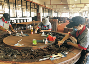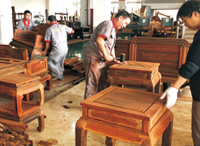 御乾堂紅木在細節上也體現著高水準,僅刮磨這一道工序就有平磨、花磨、拋光等八道工序和十五個作業標準,種種體現出生產管理規范化。